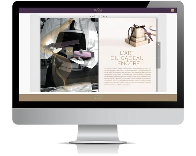 Avec son catalogue cadeaux, chocolats et confiseries, la Maison Lenôtre perpétue les valeurs de son fondateur : la passion du métier, le goût du travail bien fait, la recherche de l’excellence et le partage du savoir-faire. Avec une application inter-active, l’internaute choisit son produit, le commande en ligne et peut également recevoir des informations complémentaires ou recevoir un devis sur-mesure.