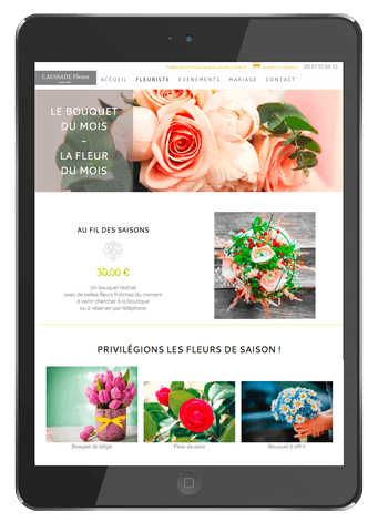 Nos équipes de design et développement mettent un soin tout particulier à créer un modèle de site unique vous permettant de mettre en avant vos produits et votre métier. Présentez vos plus belles compositions et l'intégralité de votre offre sous une forme moderne et innovante !
