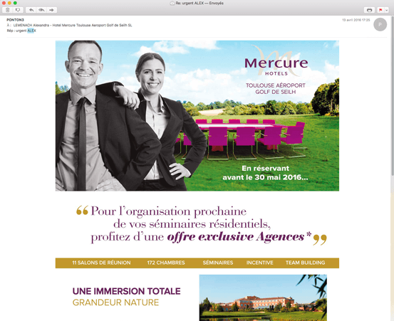La mise en forme de l’e-mail est une étape cruciale qui répond à des critères assez stricts lui permettant de s’afficher sur tous les “clients mails” (Gmail, Outlok, ...) mais également sur les mobiles avec la technique du Responsive Design. Après avoir travaillé l’apparence et la séduction du message, il faut respecter les bonnes pratiques de l’emailing dont certaines sont légalement obligatoires. Vous trouverez donc un lien de désabonnement, le lien d’affichage de votre e-mail dans un navigateur, les liens “Call to action”, un lien vers votre site web, ...